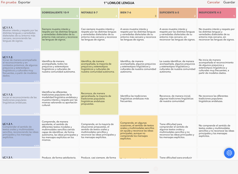 Está basado en el estupendo y gran trabajo que han realizado los compis de los Centros de Marbella, que han hecho un Grupo de Trabajo y se han dedicado a rubricar todos los criterios de evaluación de todas las áreas. Han creado un documento pdf con todas las rúbricas. Gracias compis por el gran trabajo.