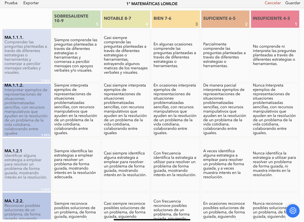 Aquí tenéis las rúbricas pasadas a formato iDoceo, es decir, para utilizar con iDoceo. Además cada criterio está relacionado a su vez con todos los elementos de la LOMLOE y aparecerán en el apartado Resumen de iDoceo. Para ello es necesario que tengas instalado el nuevo Megapack 8.2 de primaria (Andalucía).